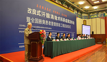 腋臭科研成果发布会上,医生高度赞扬改良式汗腺清除术科研成果。